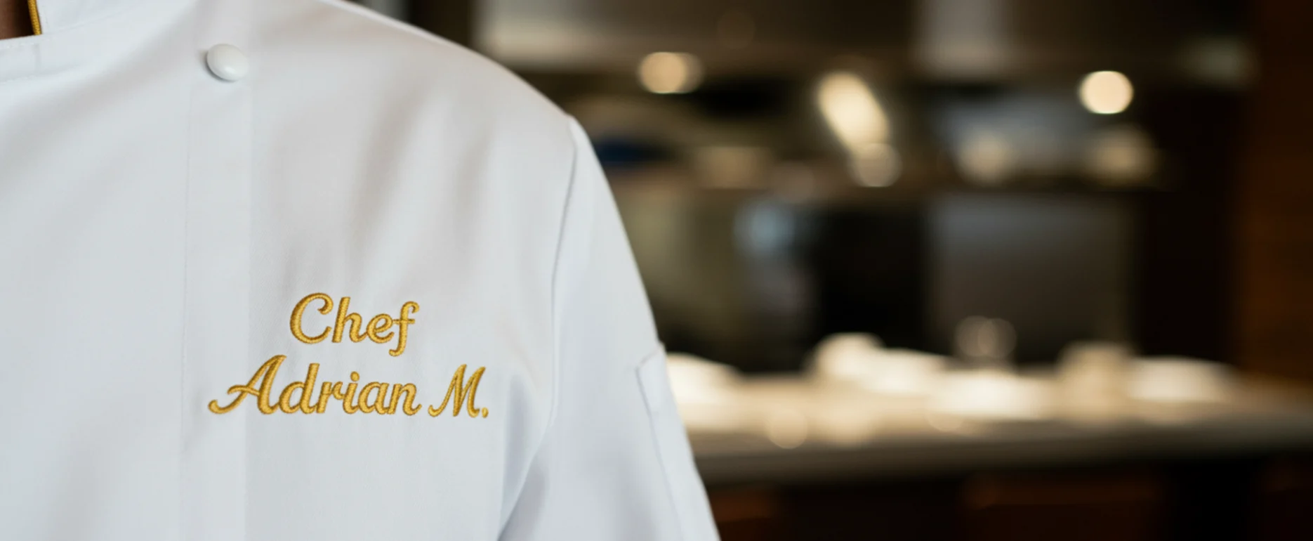 - Broderie premium pe halate, cămăși, tunici, tricouri, șorțuri etc.